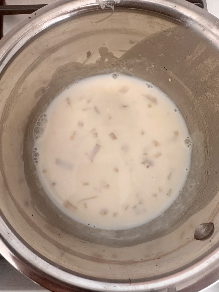 The tricky part of this week’s recipe testing was infusing milk/cream with ginger without burning the milk. In went peeled and chopped ginger in the pan, then milk, and I watched the milk with barely a blink to make sure there was enough time to infuse it with flavour while making sure it doesn’t boil. I am extremely thankful for the gas-top cooker we now have; doing this on the electric cooktop would have driven me insane.