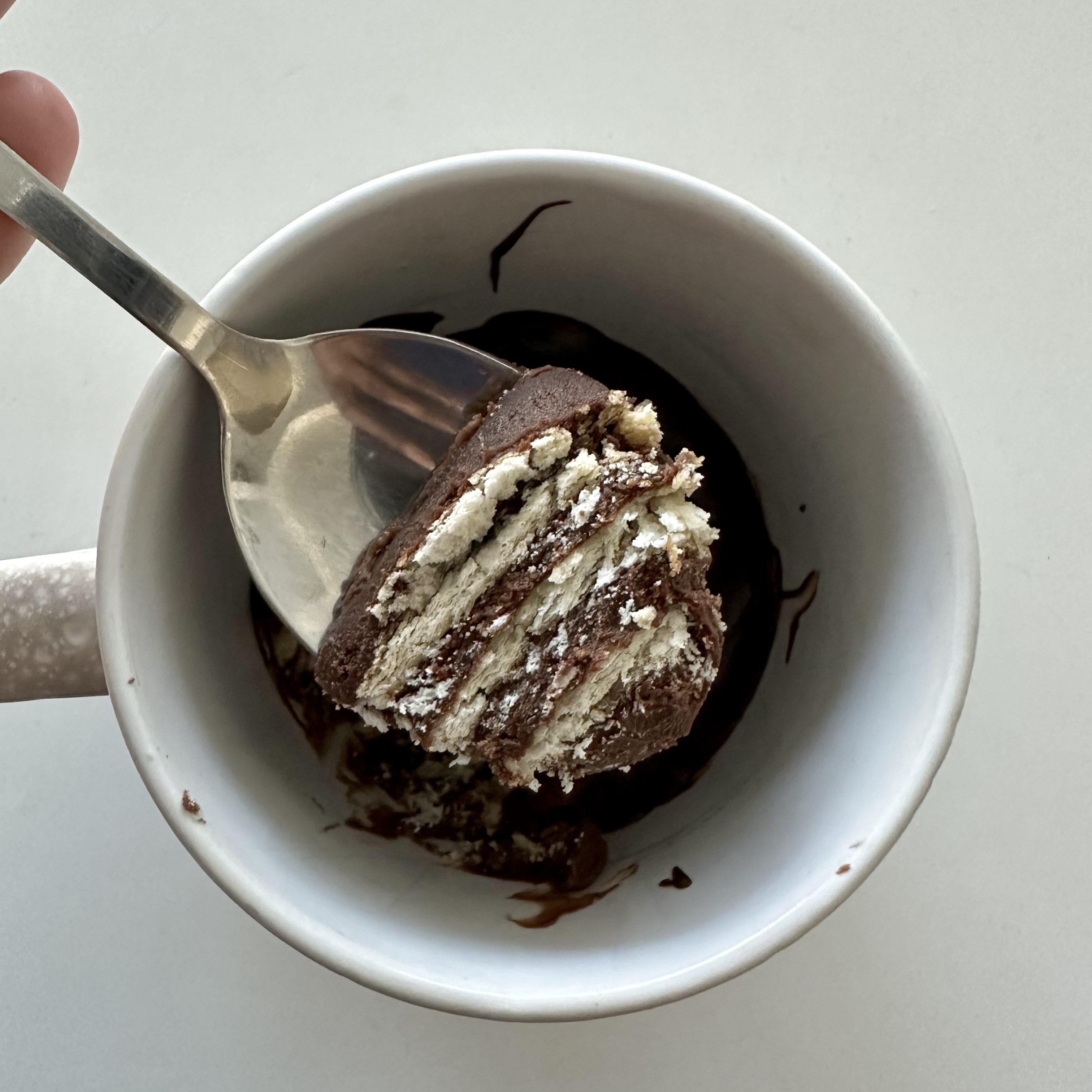 - A: Ginger-infused milk for soaking the Gold Marie biscuits