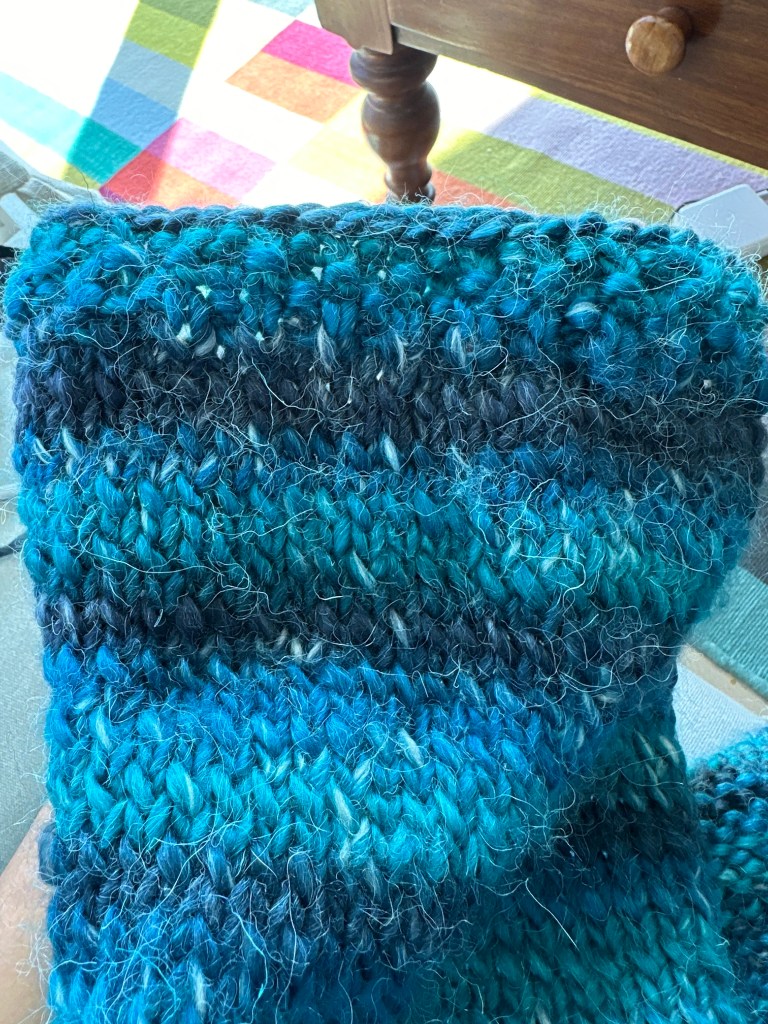It’s been two months since I started teaching myself how to knit. My screen time has gone down 30% (or more on some weeks). My hands are pretty happy that their motions aren’t limited to being cramped over a keyboard or wrapped around a phone. My wrists get actual movement. The flipside is my reading has suffered – only 11 books so far this year – as I still can’t read while knitting. I’ve read about knitters who’ve mastered this, though. So, I have hope of combining old with new for a perfect hybrid.